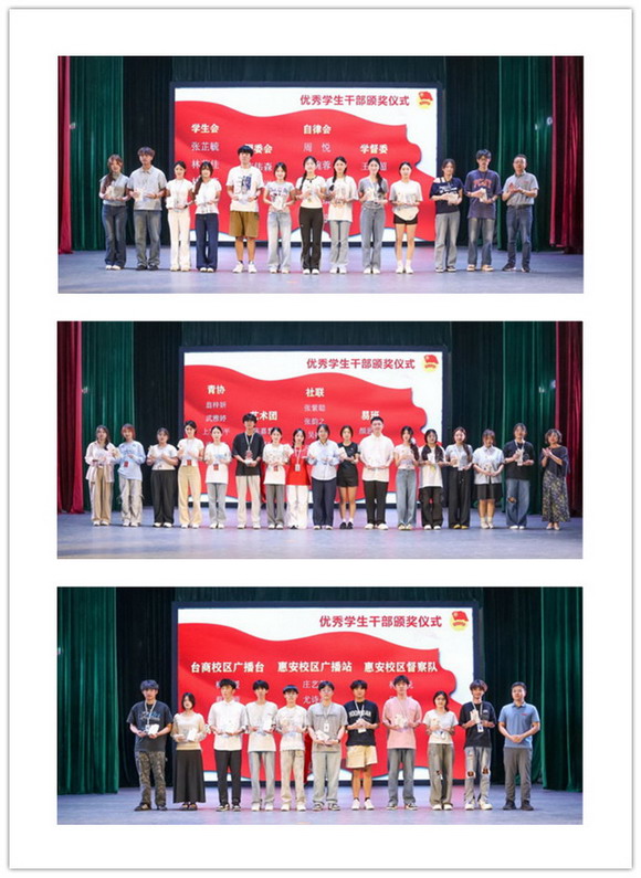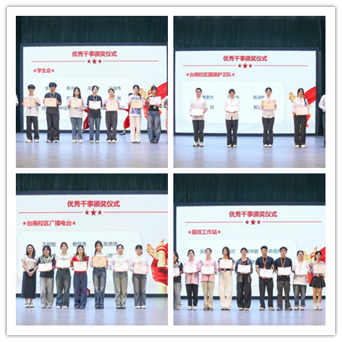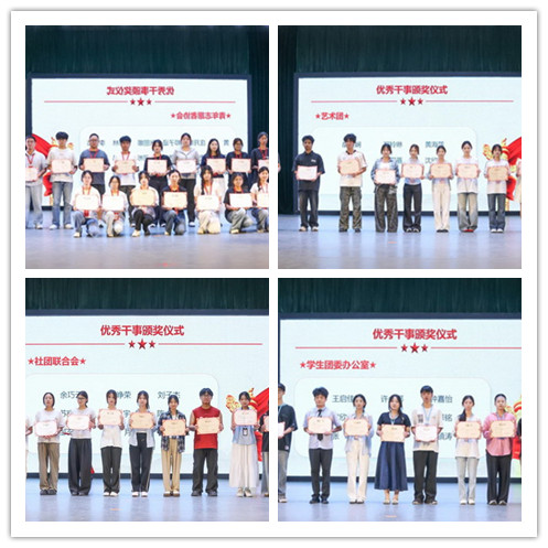 激动人心的颁奖环节将典礼推向高潮。大会隆重表彰了本学年涌现出的“优秀学生干部”与“优秀干事”代表。沉甸甸的奖杯不仅是对获奖者卓越表现的高度认可,更是对所有学生组织成员无私奉献精神的集体礼赞。