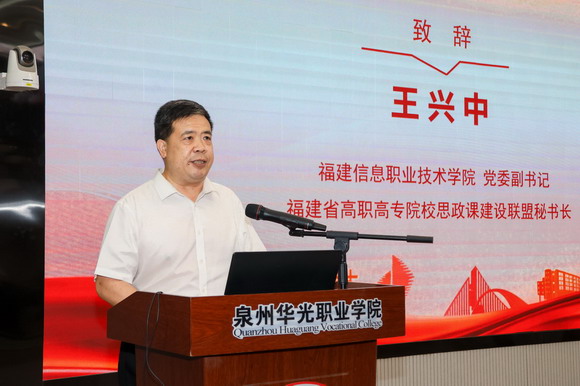 福建信息职业技术学院党委副书记、福建省高职高专院校思政课建设联盟秘书长王兴中在致辞中强调,集体备课对于提升思政课教学质量、促进教师专业成长具有重要意义,希望与会人员加强教材研究、创新教学方法、深化校际协作,为福建省思想政治教育事业贡献力量。