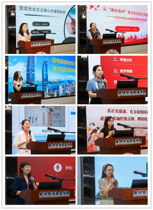 教学展示:来自泉州华光职业学院、泉州轻工职业学院等 8 所院校的思政课教师依次上台,围绕不同主题进行精彩的教学展示,老师们各展风采,从不同角度诠释了思政课教学的魅力。