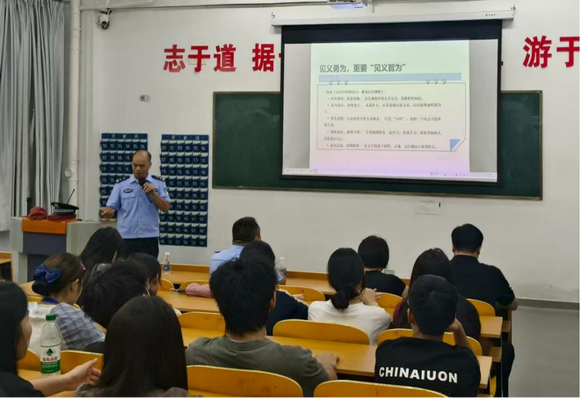公安民警以“见义勇为,见义智为”为主题,结合近年典型案例,生动讲解了见义勇为的法律界定、保护措施及应急处置方法。民警强调,见义勇为并非盲目冲动,而是基于法律保障与理性判断的善举,鼓励学生在确保自身安全的前提下,运用智慧与勇气践行正义。