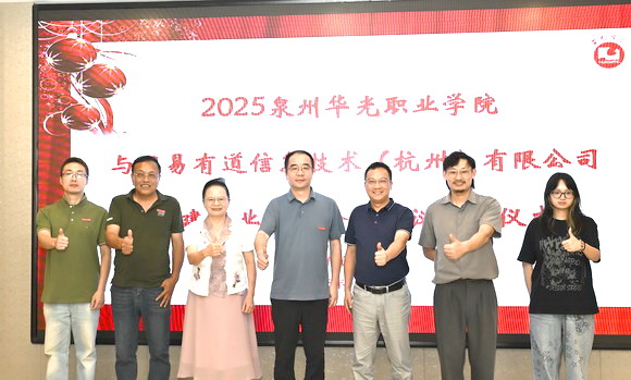 2025年9月23日下午,泉州华光职业学院与网易有道信息技术(杭州)有限公司在华光学院行政楼一楼会议室正式签署合作协议,共同成立“网易产业学院”。网易有道将投入850万元用于实训室建设与课程开发,并与AI影视技术学院联动,打造“数字媒体+虚拟仿真”复合型人才培养模式。未来六年,双方计划联合培养近700名学生,深化产教融合。