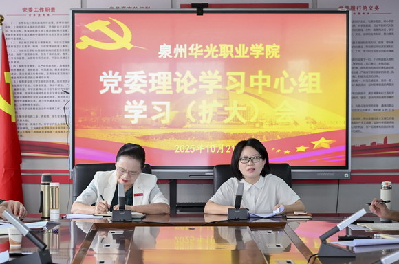 10月21日上午,我校在行政楼三楼会议室召开党委理论学习中心组学习(扩大)会,校领导及党委委员出席会议,党委职能部门负责人、全体党(总)支部书记及中层干部参加会议,会议由党委书记王巧萍主持。
