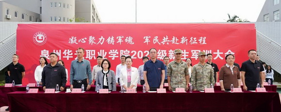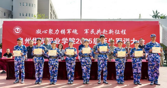 秋风猎猎,军旗飘扬。10月25日上午9时整,泉州华光职业学院台商、惠安两校区田径场同步吹响集结号,2025级新生军训汇报大会隆重举行。115个方阵、6000多名参训学员以挺拔军姿、铿锵步伐向学校领导和部队首长交上了一份闪亮的迷彩答卷。