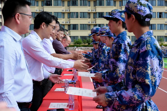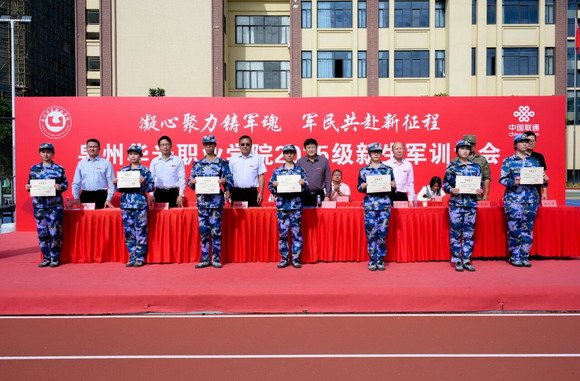 陈雄华副校长宣读表彰决定:台商校区第6方阵等23个方阵荣获“优秀方阵”称号,卢淩翔等91名学员被评为“军训标兵”。随后,领导为获奖代表颁发荣誉证书,现场掌声雷动,标兵们胸前的红花与迷彩交相辉映。
