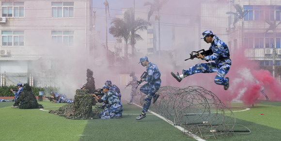 随着主持人黄强一声“分列式开始”,80个方阵迅速整队主席台前,表演方阵中,刺杀操刀光闪耀、军体拳吼声震天,各表演动作整齐划一、英姿飒爽,赢得掌声此起彼伏。