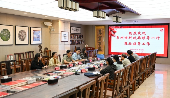 11 月 6 日,泉州市科技局领导李成思、台商区科经局庄碧玉主任一行莅临我校,就技术合同登记工作开展专项督导调研,旨在精准推动学校科研成果转化提质增效。我校张云刚副校长、科研处刘旭东副处长热情接待,并围绕技术合同登记工作进行详细汇报与深入交流。