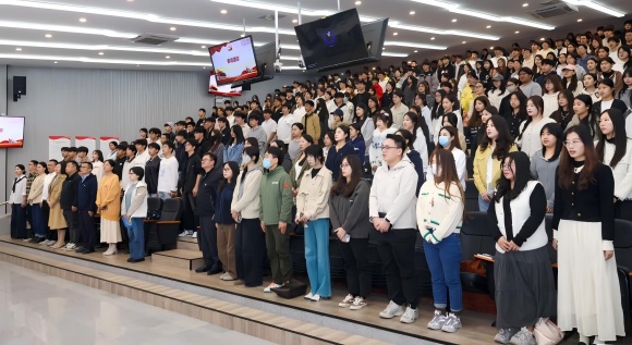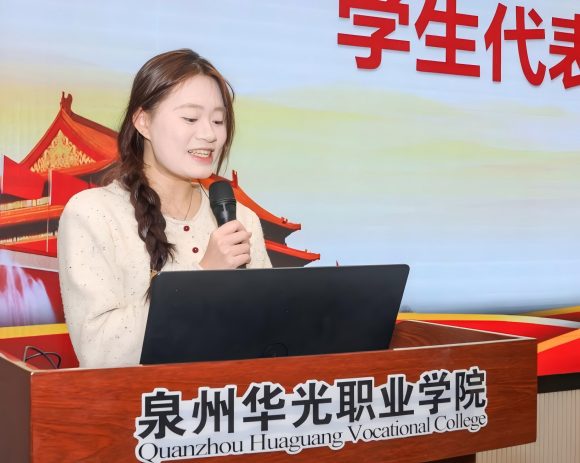 教育学院陈学榕同学作为学员代表发言,代表所有党校学员郑重承诺:将以“求知若渴”的态度潜心学习,以“严于律己”的作风恪守纪律,以“知行合一”的担当践行使命,把党课所学转化为实际行动,在专业学习中追求卓越,在志愿服务中勇挑重担,在校园生活中发挥先锋模范作用。