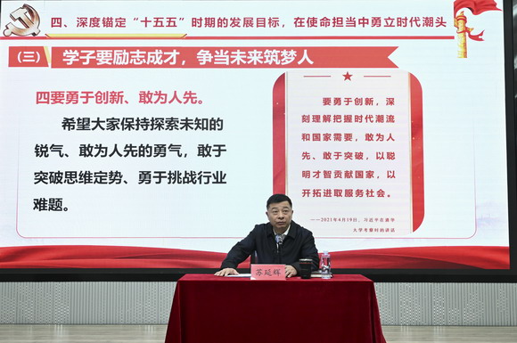 苏延辉书记从“十五五”规划建议的重大意义、“十四五”辉煌成就、“十五五”实践路径、台商区发展案例和高校使命担当四个维度展开宣讲,用翔实数据回顾了全国、省市及台商区在“十四五”期间GDP、数字经济、文旅融合、产业升级等方面取得的突破性进展,并描绘了“十五五”期间台商区打造现代产业新城、滨海文旅胜地的宏伟蓝图。