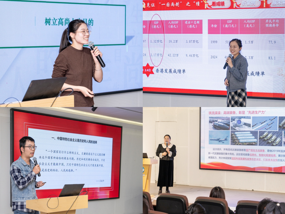 两校四位思政教师先后进行教学展示。福建电力职业技术学院汪远萍老师以“树立高尚人生目的”为题,引导学生确立正确人生追求;施雅琪老师围绕“解锁香港、澳门繁荣发展的密码”展开教学,生动阐释“一国两制”的实践成就。泉州华光职业学院陈美佳老师以“透过镜头学真理”为切入点,结合影像资料解读“三个代表”重要思想;莫前程老师从历史视角出发,阐述“中国特色社会主义是历史和人民的选择”。四位教师教学风格鲜明,展示出扎实的专业功底。展示结束,苏瑞莹教授对四位老师的授课进行细致点评,在肯定亮点的同时提出了优化建议。