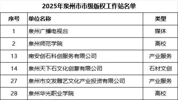 近日,泉州市版权局正式公布2025年泉州市市级版权工作站认定结果,泉州华光职业学院成功获批2025年泉州市市级版权工作站。