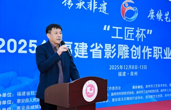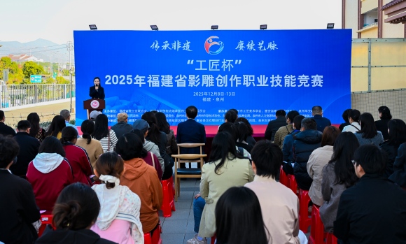 为深入学习贯彻党的二十届四中全会精神,传承与弘扬中华优秀传统文化,培养服务社会主义文化强国建设的高技能人才与大国工匠,12月8日上午,2025年福建省“工匠杯”影雕创作职业技能竞赛在泉州华光职业学院惠安校区隆重开幕。来自全省各地的35名影雕高手将在为期6天(8日—13日)的赛程里同台竞技,以泉州“世遗22景”为创作题材,用钢錾与石火诠释“匠心筑梦、石上生辉”的非遗风采。