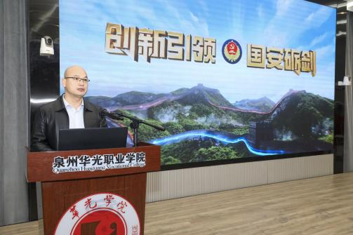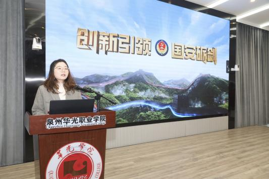 随后,泉州华光职业学院副校长陈雄华发表讲话。他表示,高校作为人才培养和思想引领的主阵地,是筑牢国家安全人民防线的重要环节。本次征稿大赛为师生搭建了抒发爱国情怀、普及安全知识的优质平台,参赛作品中饱含的责任担当与智慧思考,充分展现了台商投资区师生的家国情怀。希望以此次大赛为契机,推动国家安全教育融入日常教学与校园文化,引导广大师生成为国家安全的坚定维护者、积极传播者。