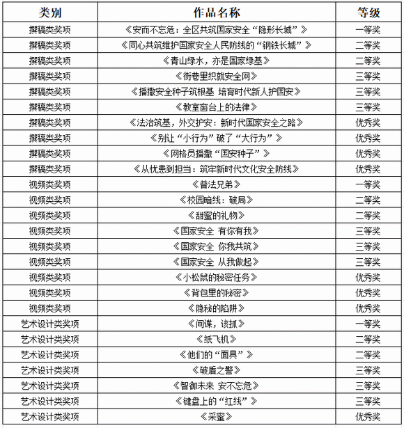 一纸文稿诉初心,一段影像传力量,一席设计绘担当。本次大赛覆盖撰稿、视频、艺术设计三大赛项,以多元形式诠释国安意义,颁奖仪式的圆满落幕,正是这份初心与担当的最好见证。国家安全,人人皆是主角,愿我们带着这份热忱,以笔为剑、以影为炬、以美为盾,将守护家国的信念融入日常,共筑平安防线,共护岁月静好!