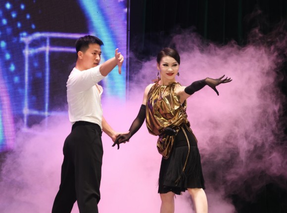 体育学院的拉丁舞《燃情恰恰、柔梦伦巴》以奔放节拍掀起小高潮;