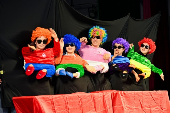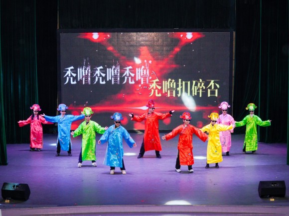 基础部和马院的舞台剧《小人儿舞》幽默滑稽,引起哄堂大笑;