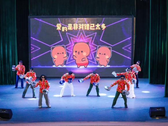 由陈雅芳校长领衔朗诵、文旅与教育学院带来的合唱《当那一天来临》则以铿锵节奏致敬奋斗者,把现场气氛推向顶点。