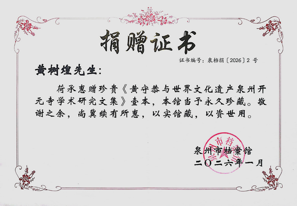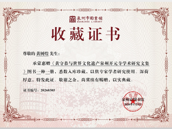 近日,由泉州华光职业学院非遗研究院院长黄树煌主编的《黄守恭与世界文化遗产泉州开元寺学术研究文集》由中国书店出版社正式出版。该书以扎实的史料考据与跨学科的研究视野,引发学界广泛关注,并已被泉州市图书馆、泉州市档案馆、华侨大学图书馆等多家机构收藏,成为泉州世界遗产保护与地方文化研究领域的一项重要成果。